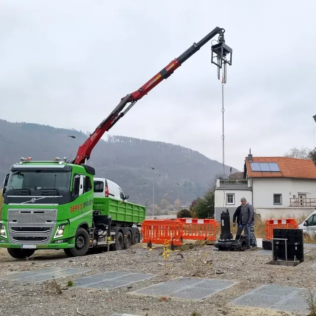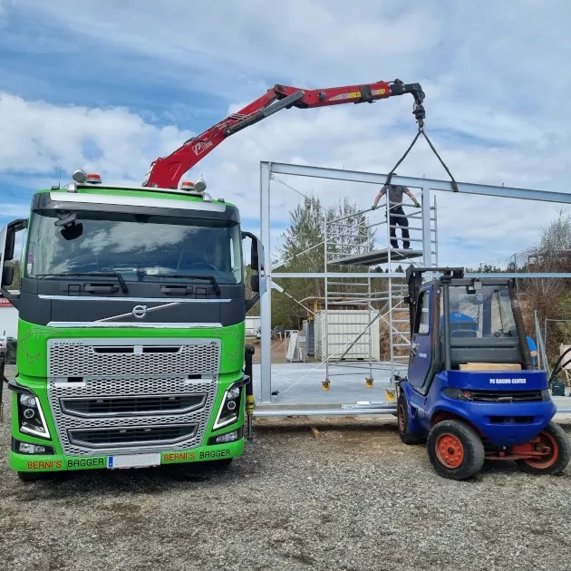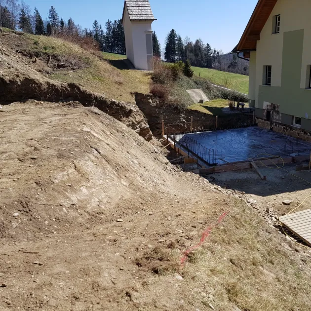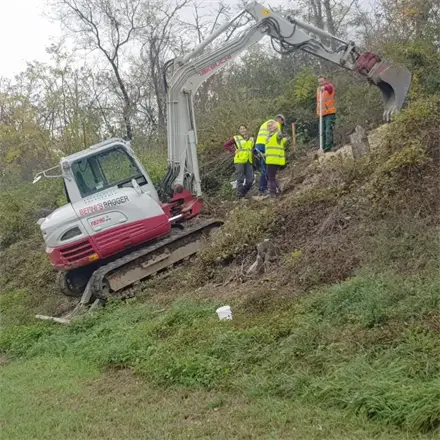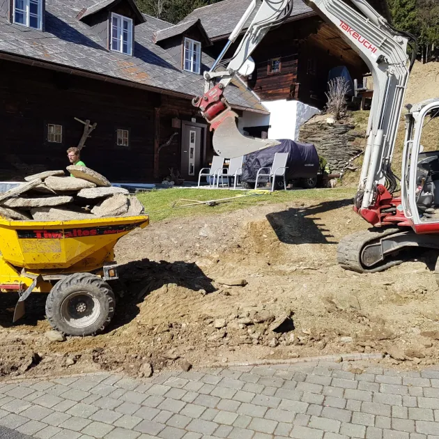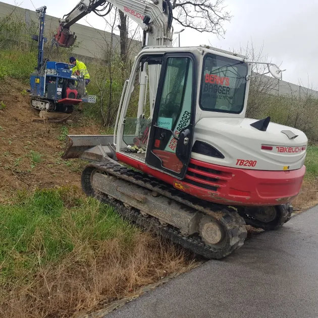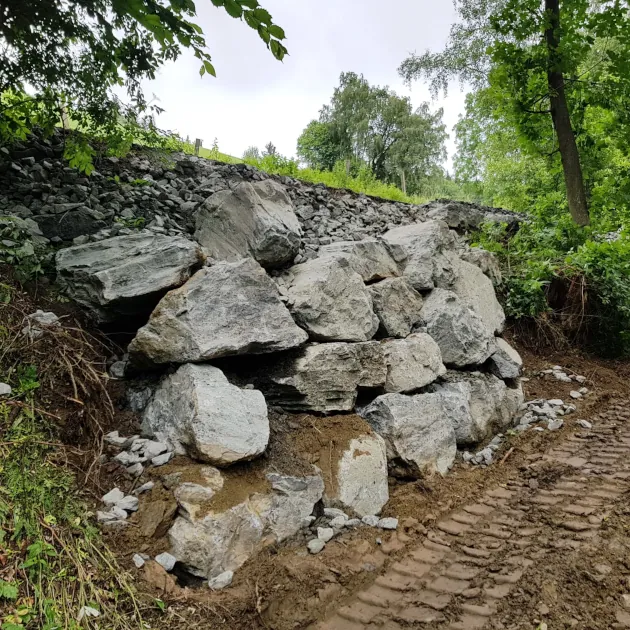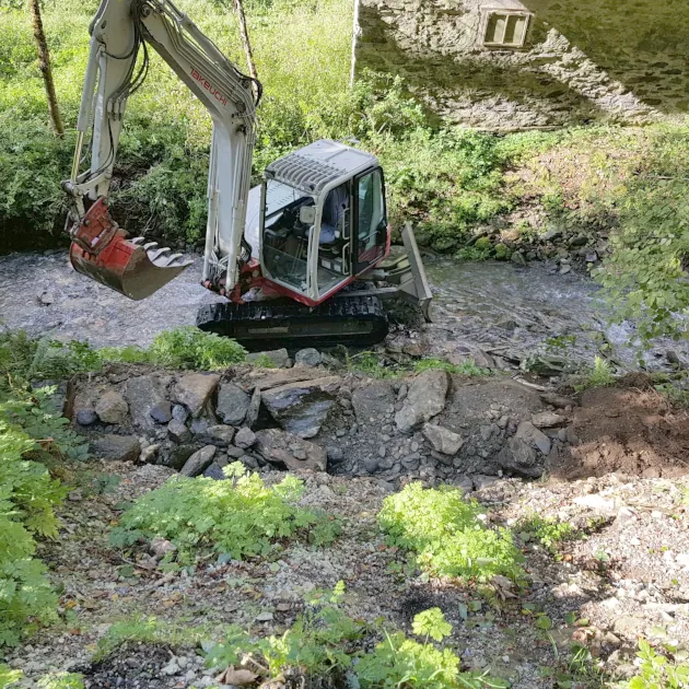 Arbeiten im privaten Bereich, Hangsicherung bei Erdrutschgefahr (nach Unwettern), Mitwirkung bei Renaturierungsprojekten (Gewässervernetzungen), Herstellung von Abstellflächen für Schwergeräte, und, und, und…
